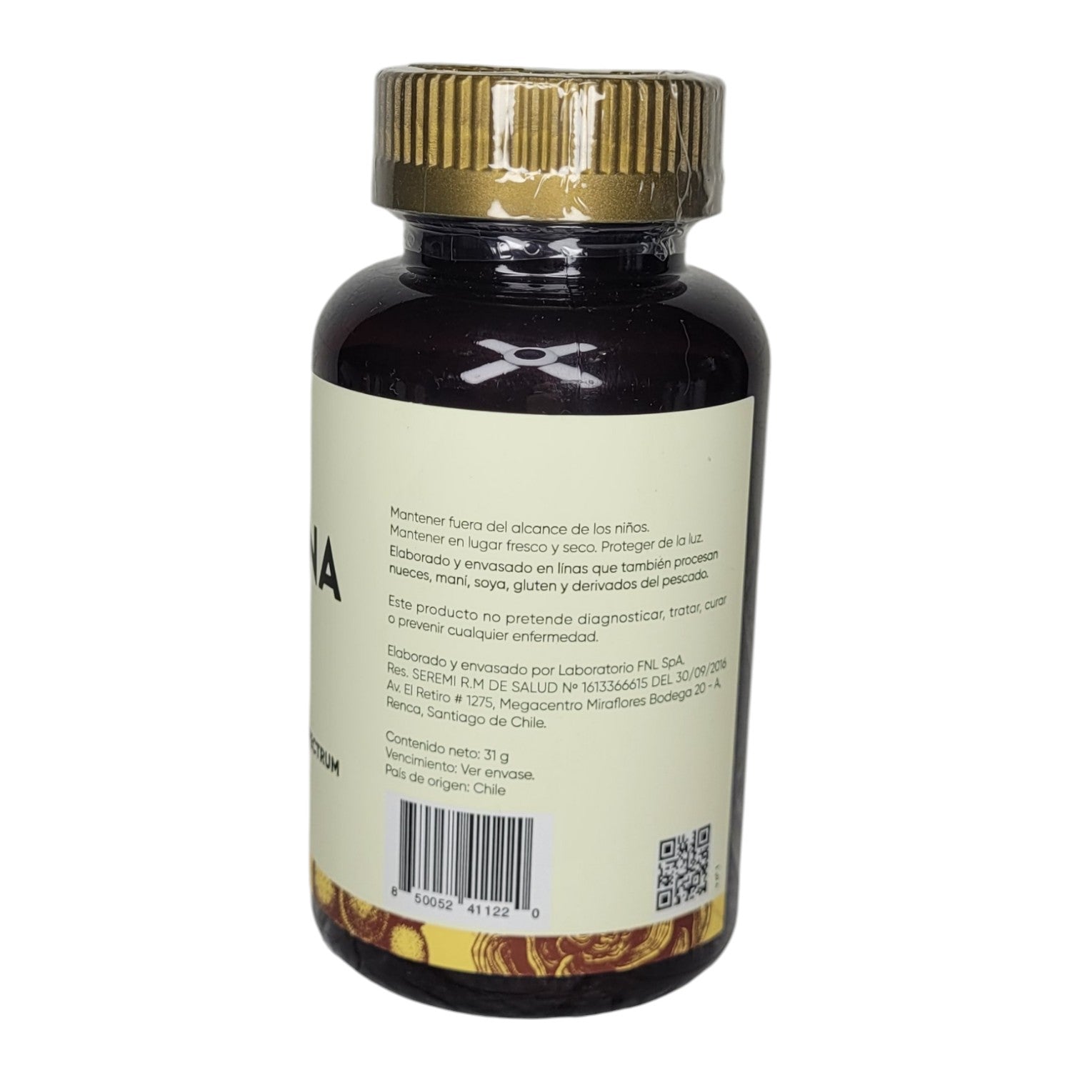 Una porción se compone de 1 cápsula (0.4 g). Este suplemento está diseñado para un aporte concentrado del hongo, con un perfil nutricional sumamente bajo: